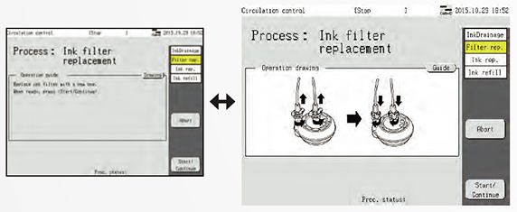 The necessary operations will be displayed on the screen using illustrations when the ink