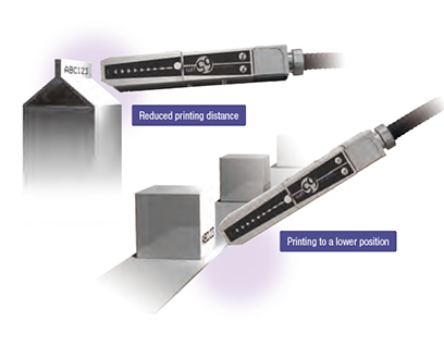 Printing up to 200 m/min at a height of 50 to 400 mm. Marking by side, top or inclined plane (thanks to umbilical version).