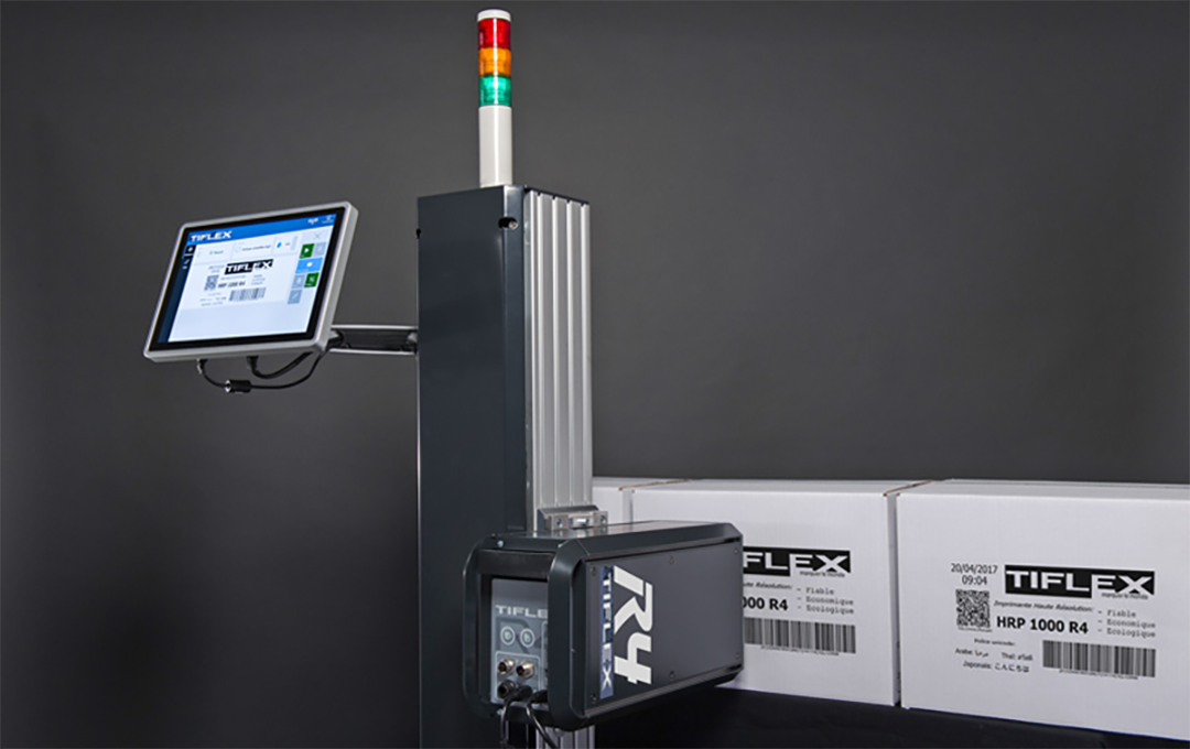 New Tiflex HRP R4 printer for marking secondary packaging, faster and more economical. HRP R4 is available in “gradient” mode thanks to its intelligent printing station, which can be controlled via a PC or tablet.