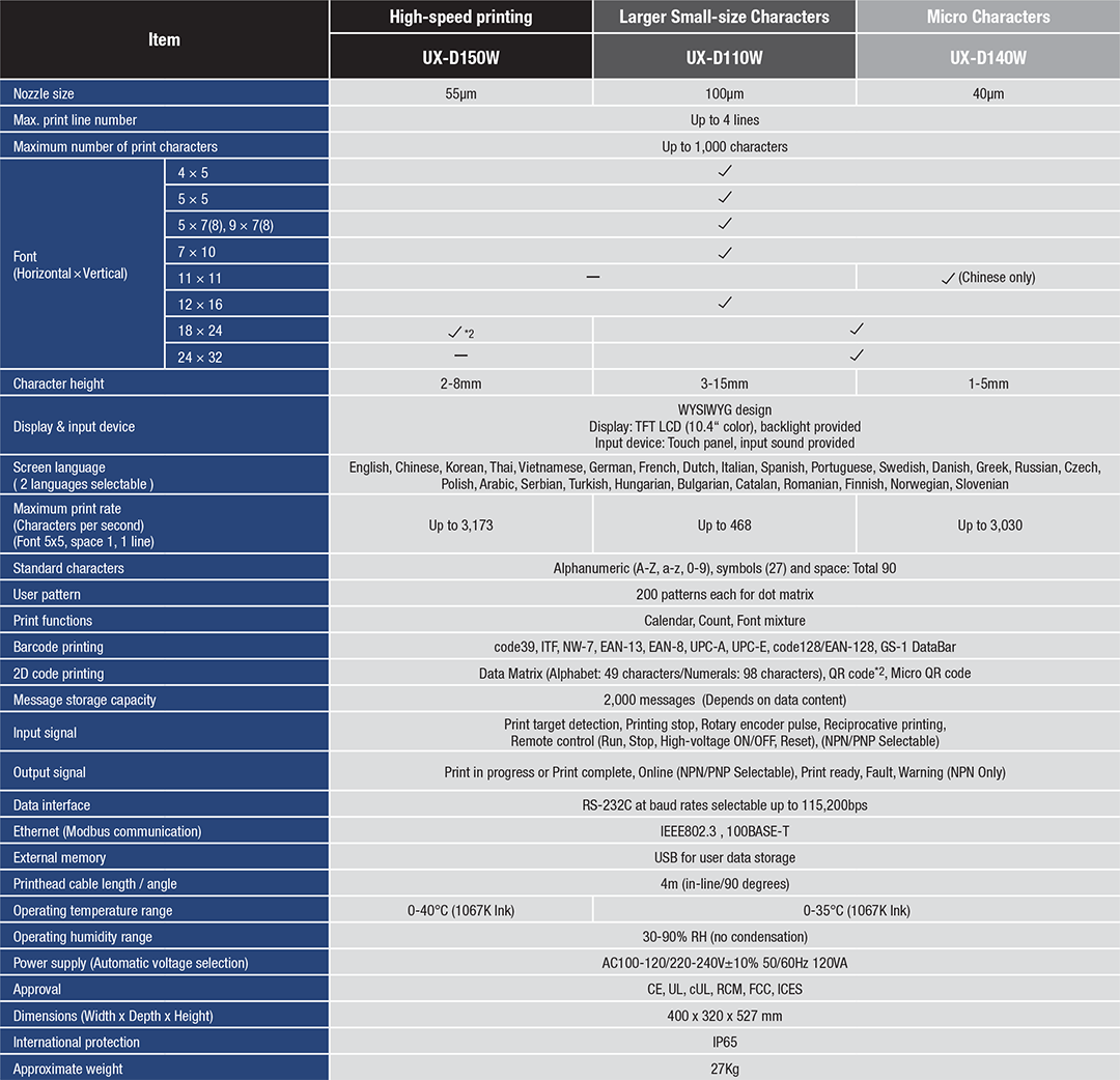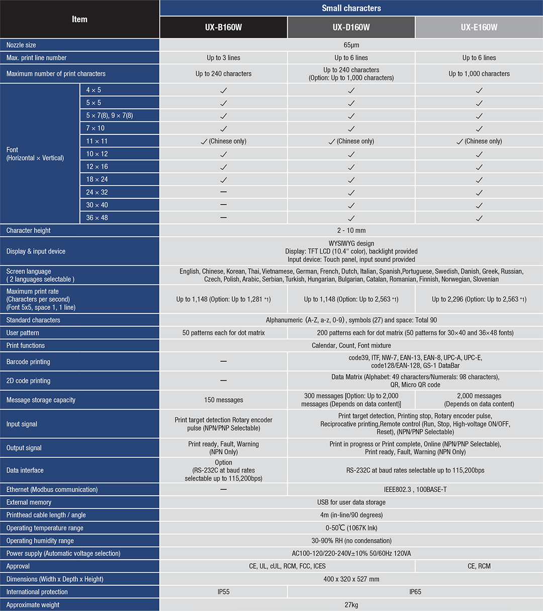 printed character appear clearly. For single-line high-speed printing, its print quality is